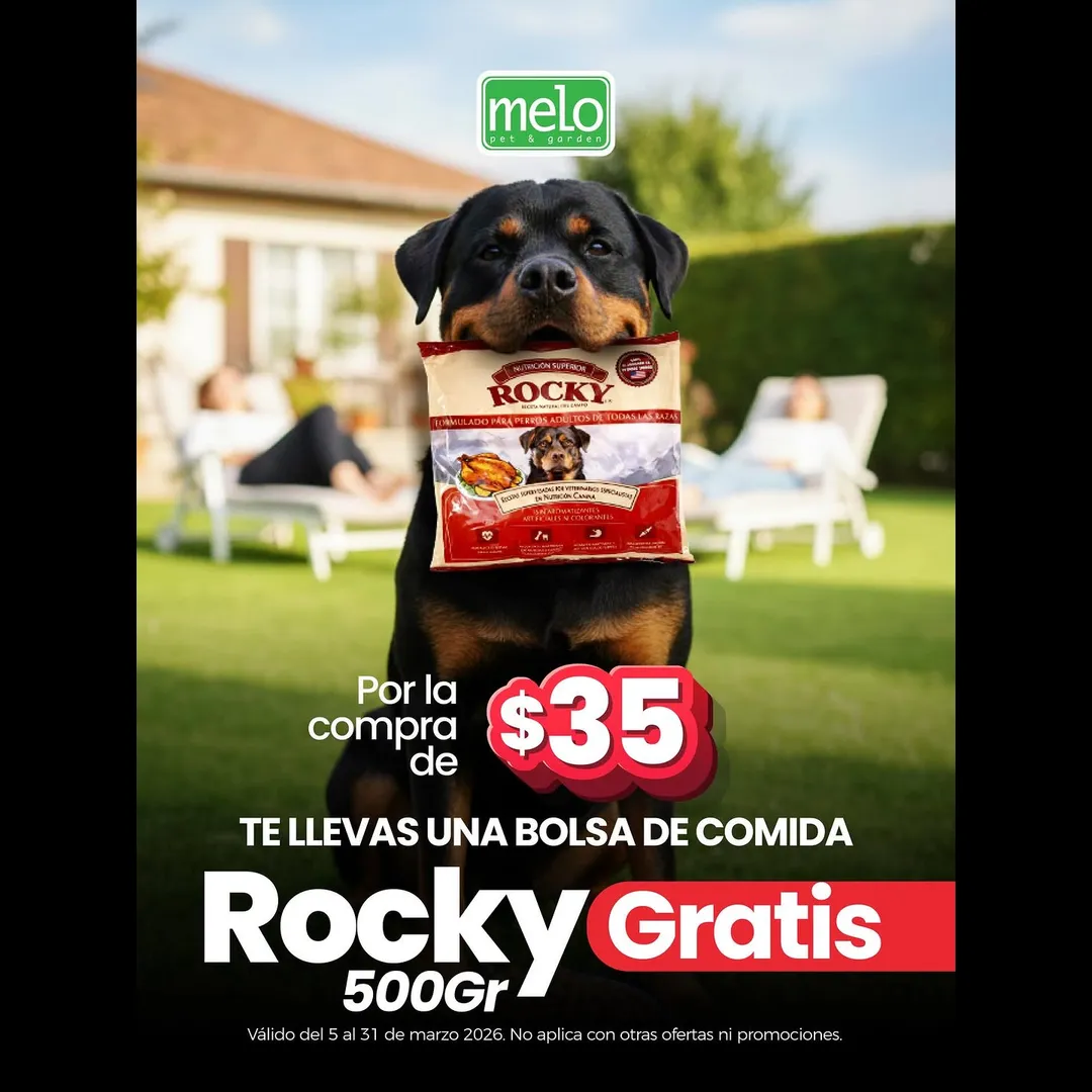➡️En marzo por la compra de $35 te llevas 1 bolsa de comida Rocky 500gr gratis.