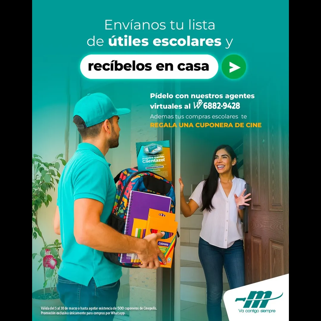 Además, al realizar tus compras escolares te regalamos una cuponera de cine para disfrutar en familia. 🎬🍿