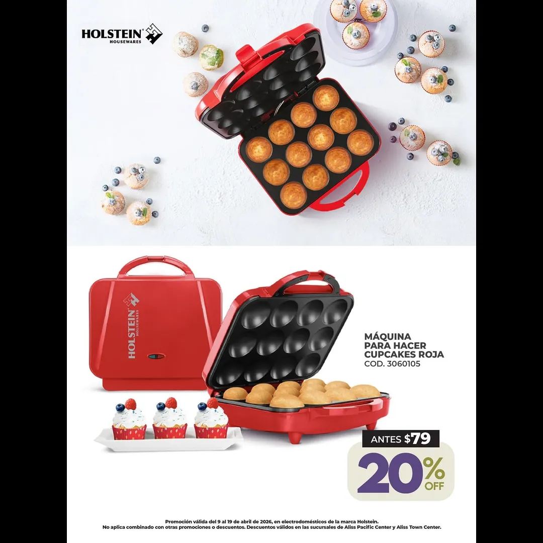 Promoción válida del 9 al 19 de abril de 2026 en electrodomésticos seleccionados de la marca Holstein. No aplica con otras promociones o descuentos.