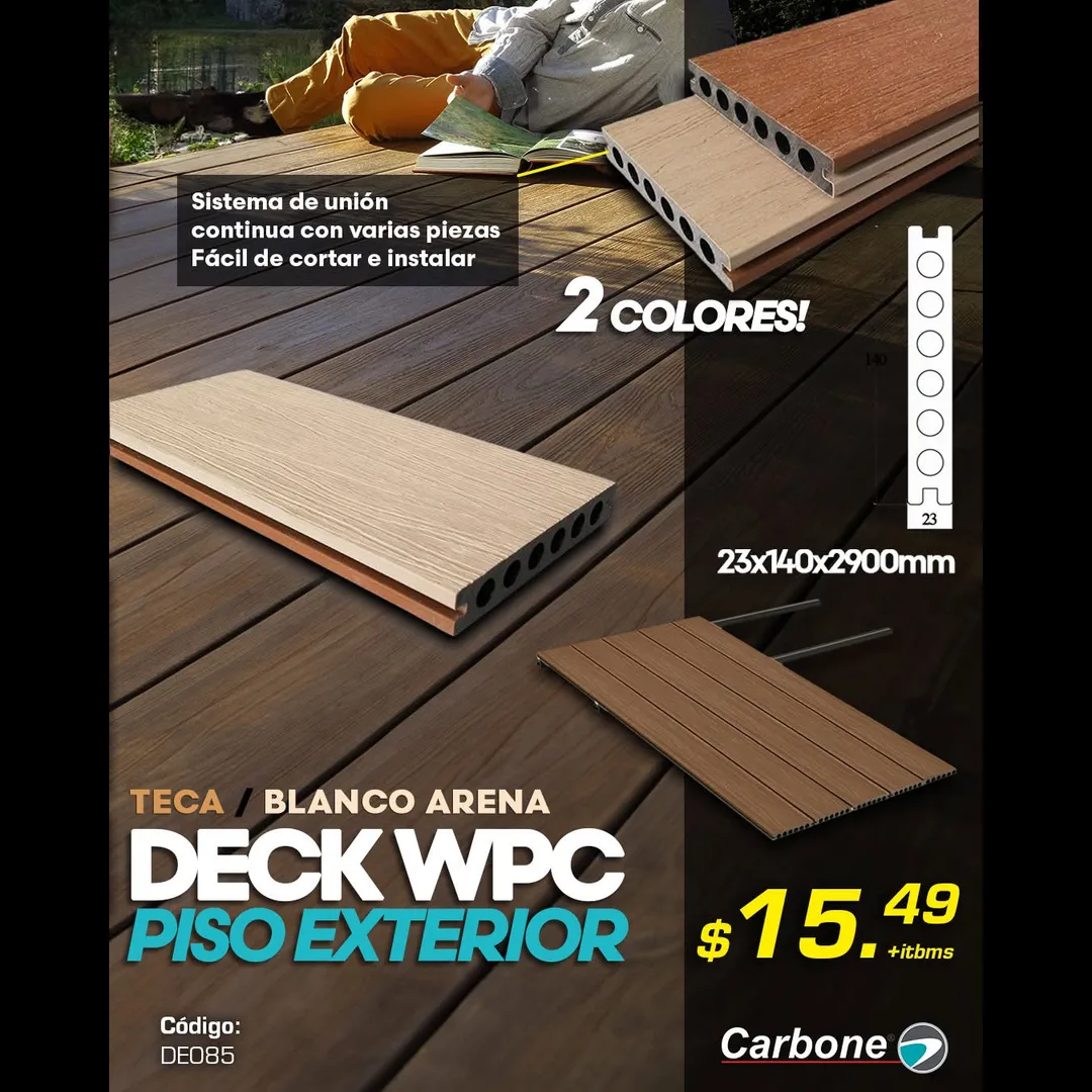 🤩✨ Dale nueva vida a tu terraza con los DECK WPC Piso Exterior de Carbone, ahora en promoción. 🏡🌿