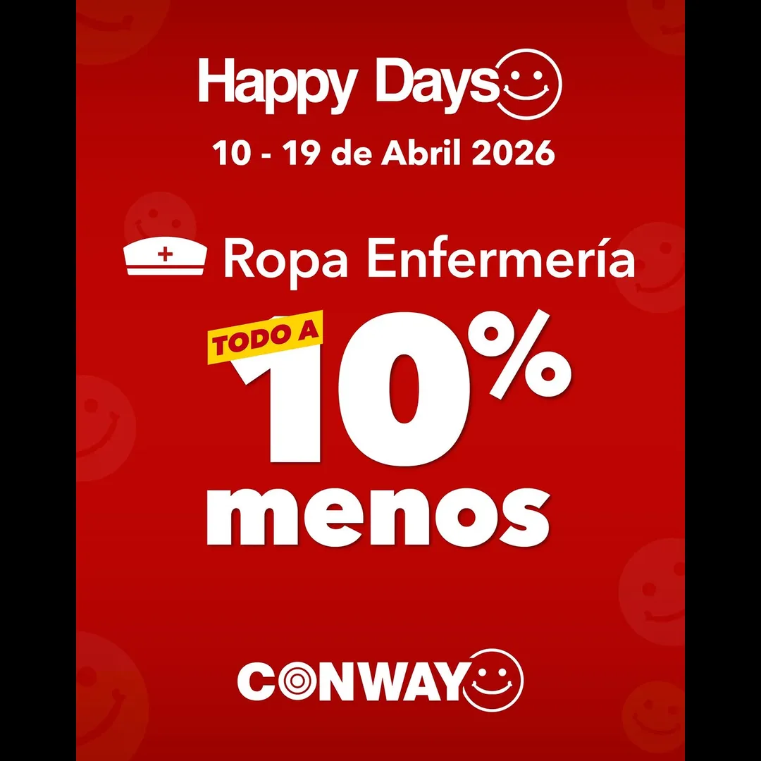 Ofertas válidas del 10.04.26 al 19.04.26. Aplica en tiendas y conwayclick.com. No aplica en farmacia ni cafetería. No acumulable con otras promociones. Cashback equivalente al 10% del total antes de ITBMS. Para redimir, presentar cupón original.