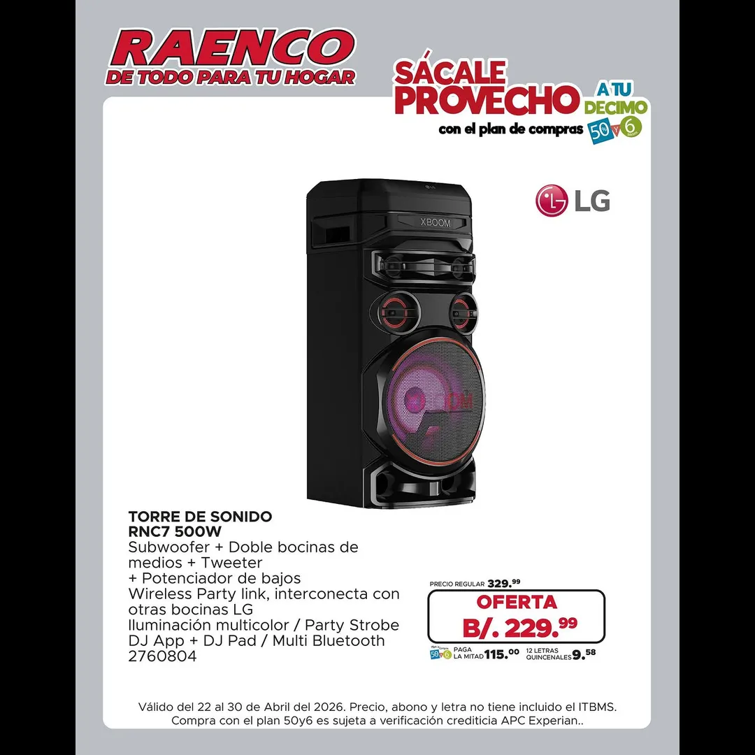 Descuento en Torre de Sonido a B/. 229.99