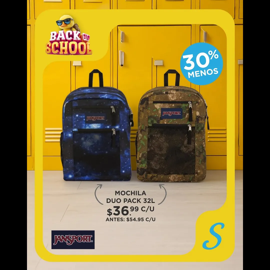 Descuentos BackToSchool en Steven’s – ¡Mochilas Jansport! Precio: Consulta en tienda.