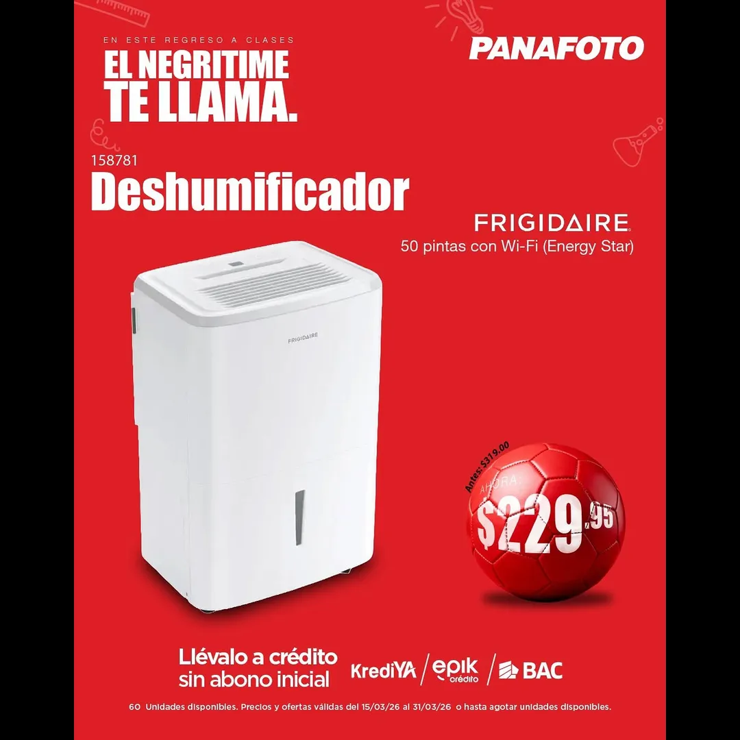 Deshumidificador Frigidaire 50 Pintas | 60 unidades disponibles
