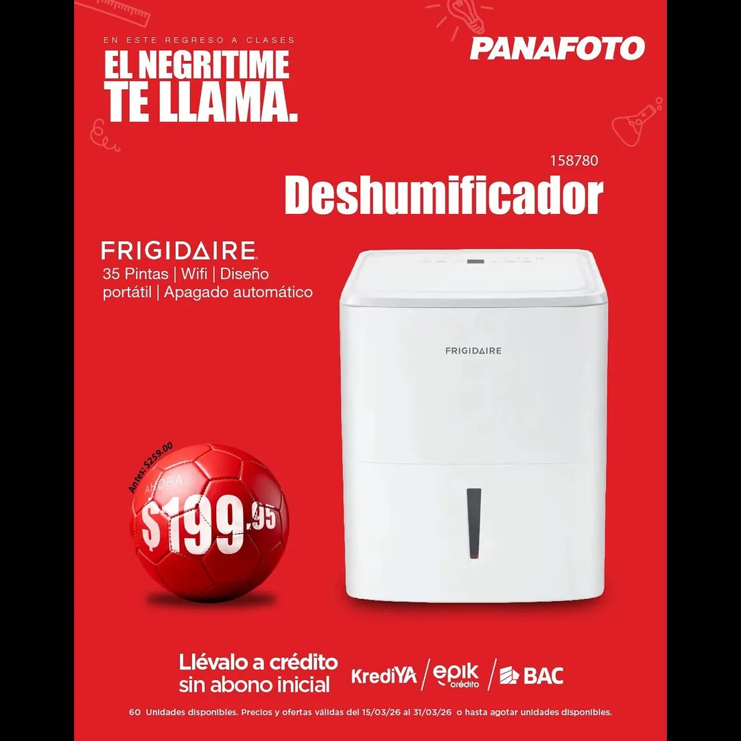 Deshumidificador Frigidaire 35 Pintas | 60 unidades disponibles