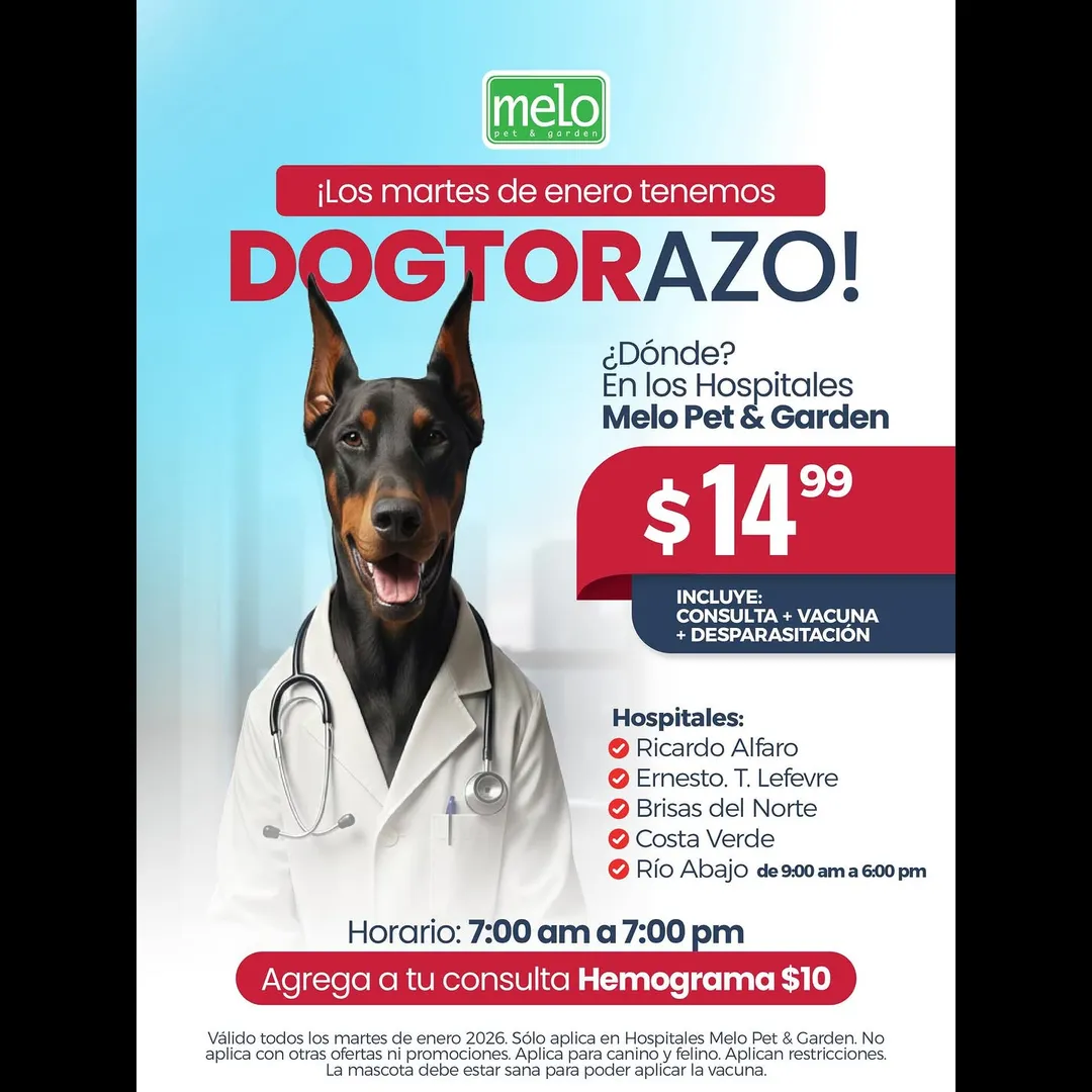 🔸Sólo aplica en Hospitales Melo Pet & Garden.