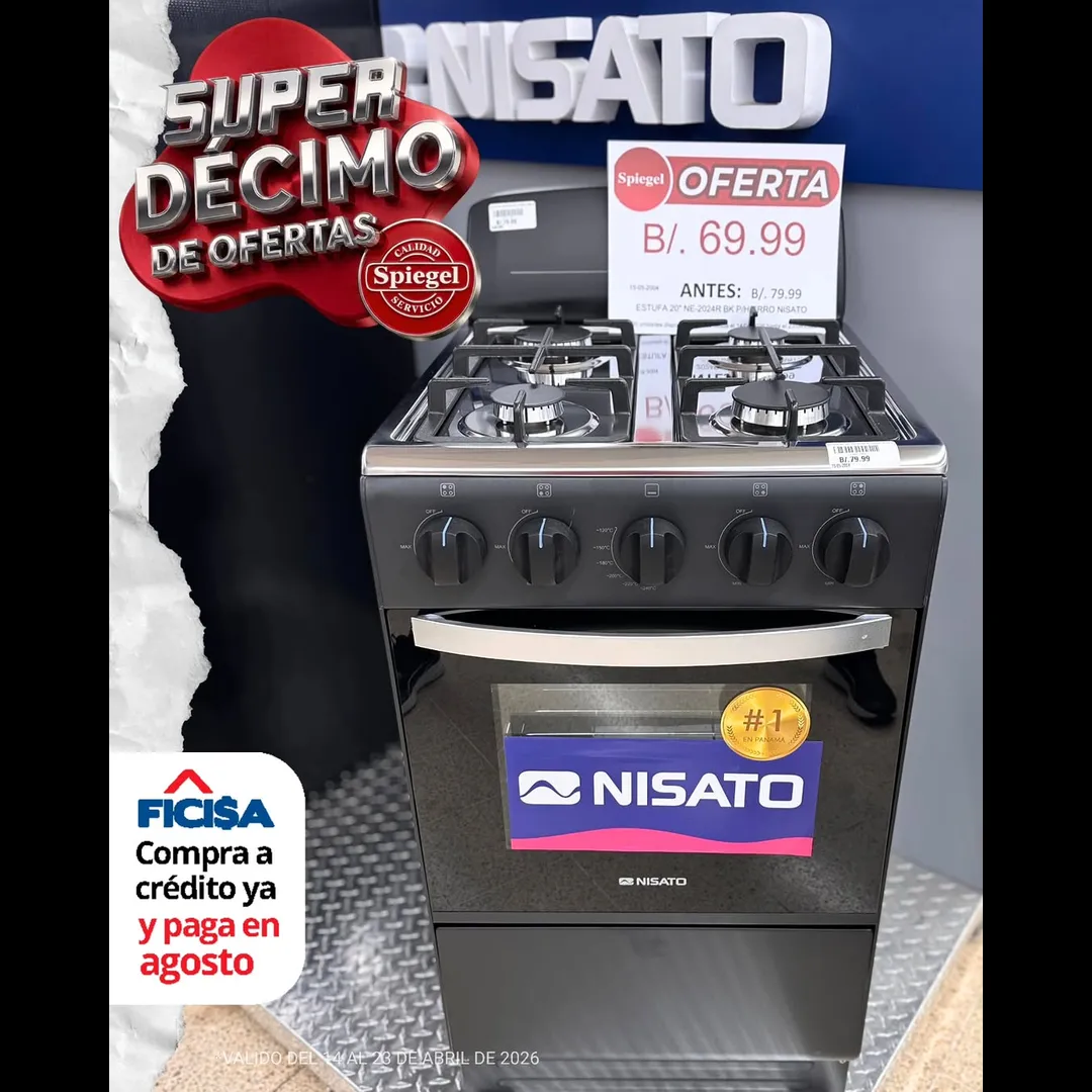 Aprovecha nuestro Súper Décimo de Ofertas en Spiegel y llévate esta estufa NISATO de 20” a un precio increíble.
