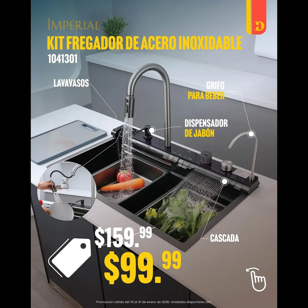 #Fregador #FregadorDeCocina #FregadorModerno #AceroInoxidable #GrifoExtraible #CocinaModerna #Imperial #Novedad