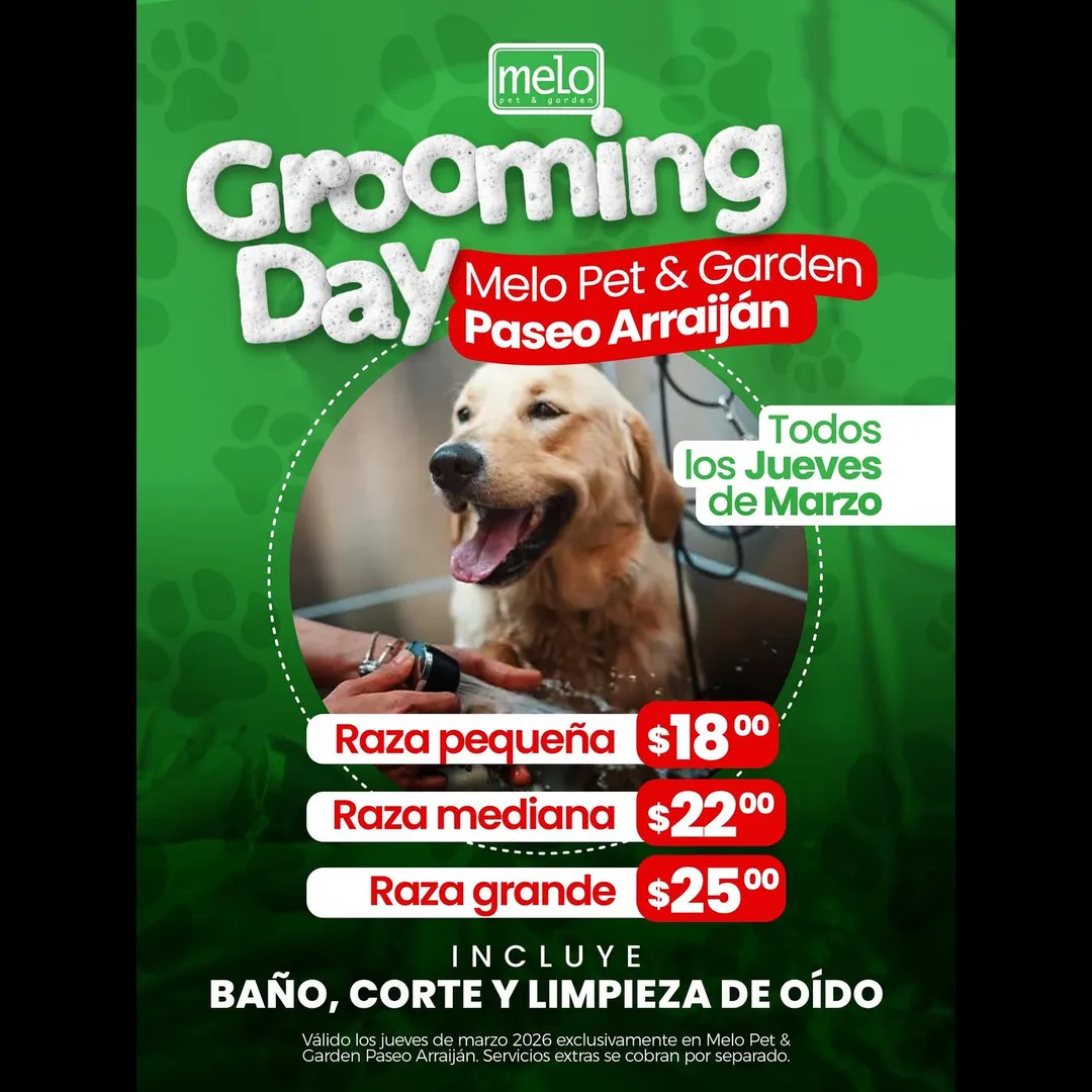 ¡Todos los jueves de marzo tenemos Grooming Day en nuestra sucursal Melo Pet & Garden Paseo Arraijan!🐶💚😬