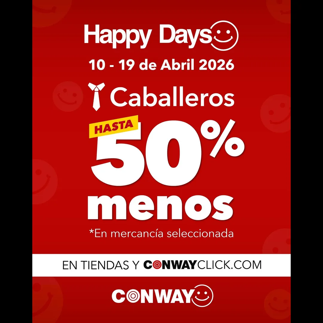 Ofertas válidas del 10.04.26 al 19.04.26. Aplica en tiendas y conwayclick.com. No aplica en farmacia ni cafetería. No acumulable con otras promociones. Cashback equivalente al 10% del total antes de ITBMS. Para redimir, presentar cupón original.