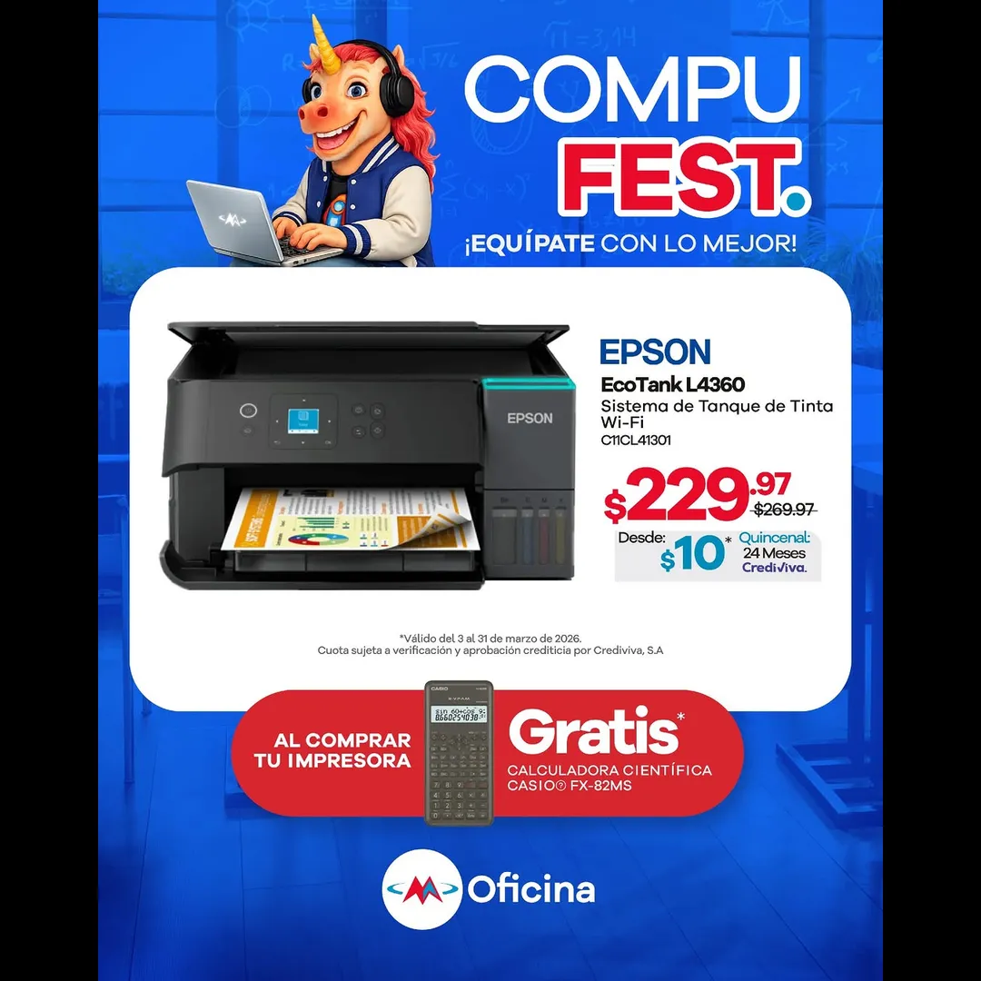 Por la compra de tu impresora, te llevas una calculadora GRATIS para que tengas todo lo que necesitas para estudiar, trabajar o tu oficina en casa.