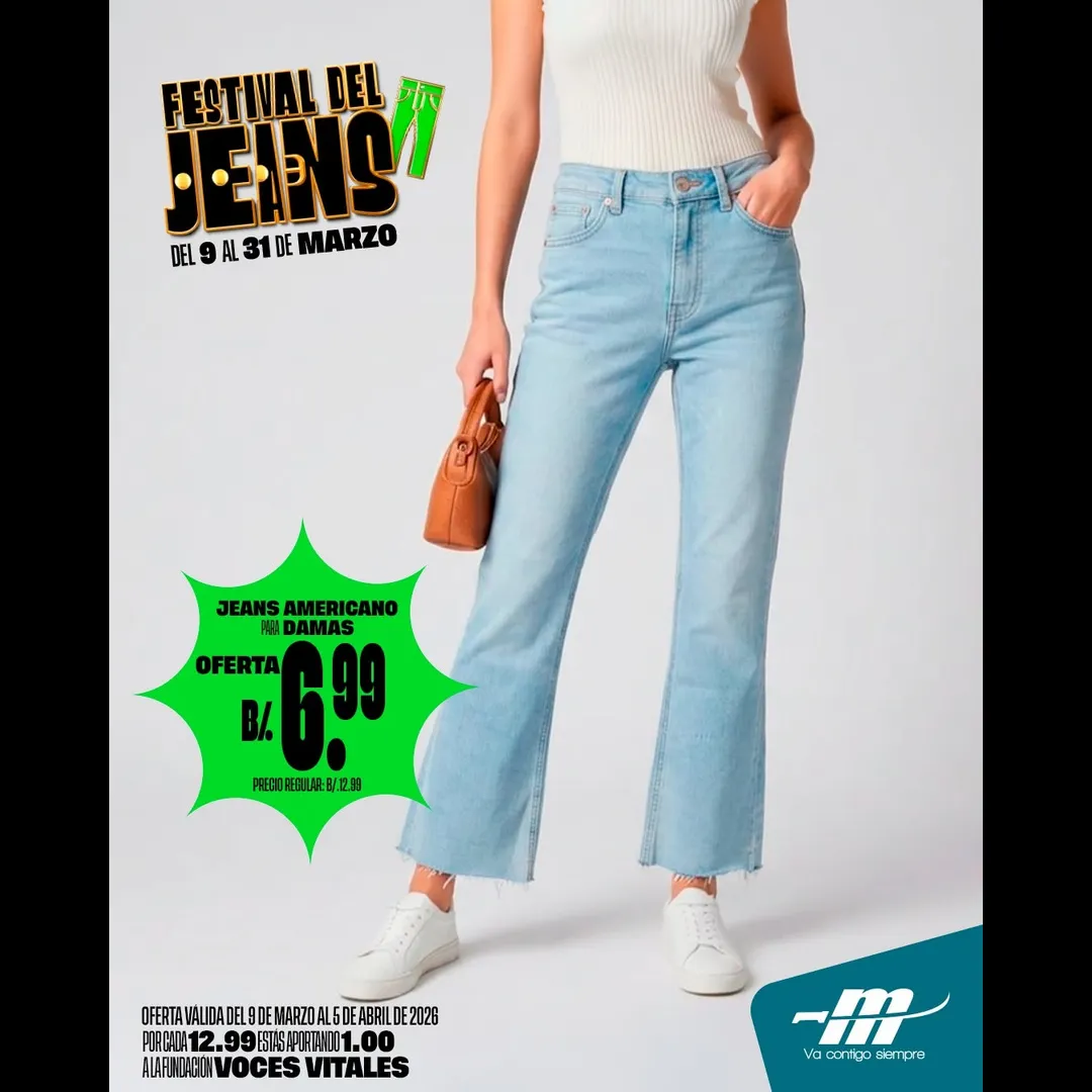 En el Festival del Jeans de El Machetazo encuentra Jeans Americano para damas a solo B/. 6.99.