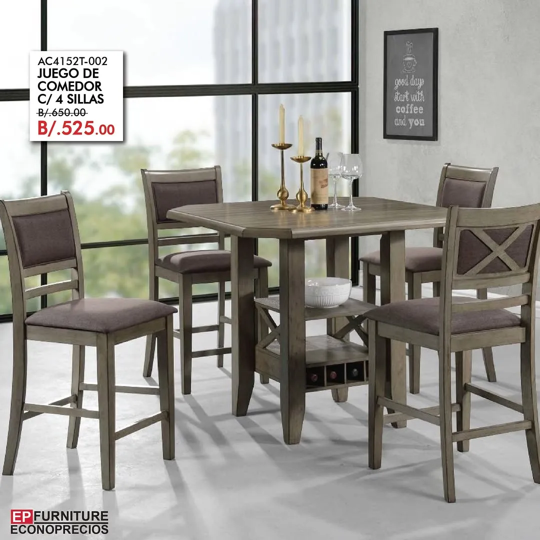 Vengan a ver nuestros juegos de comedor alto como este modelo con 4 asientos de madera.