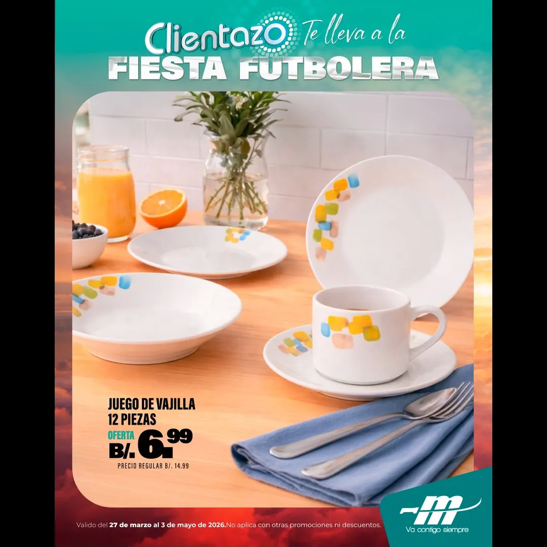 Llévate tu juego de vajilla 12 piezas por solo B/.6.99