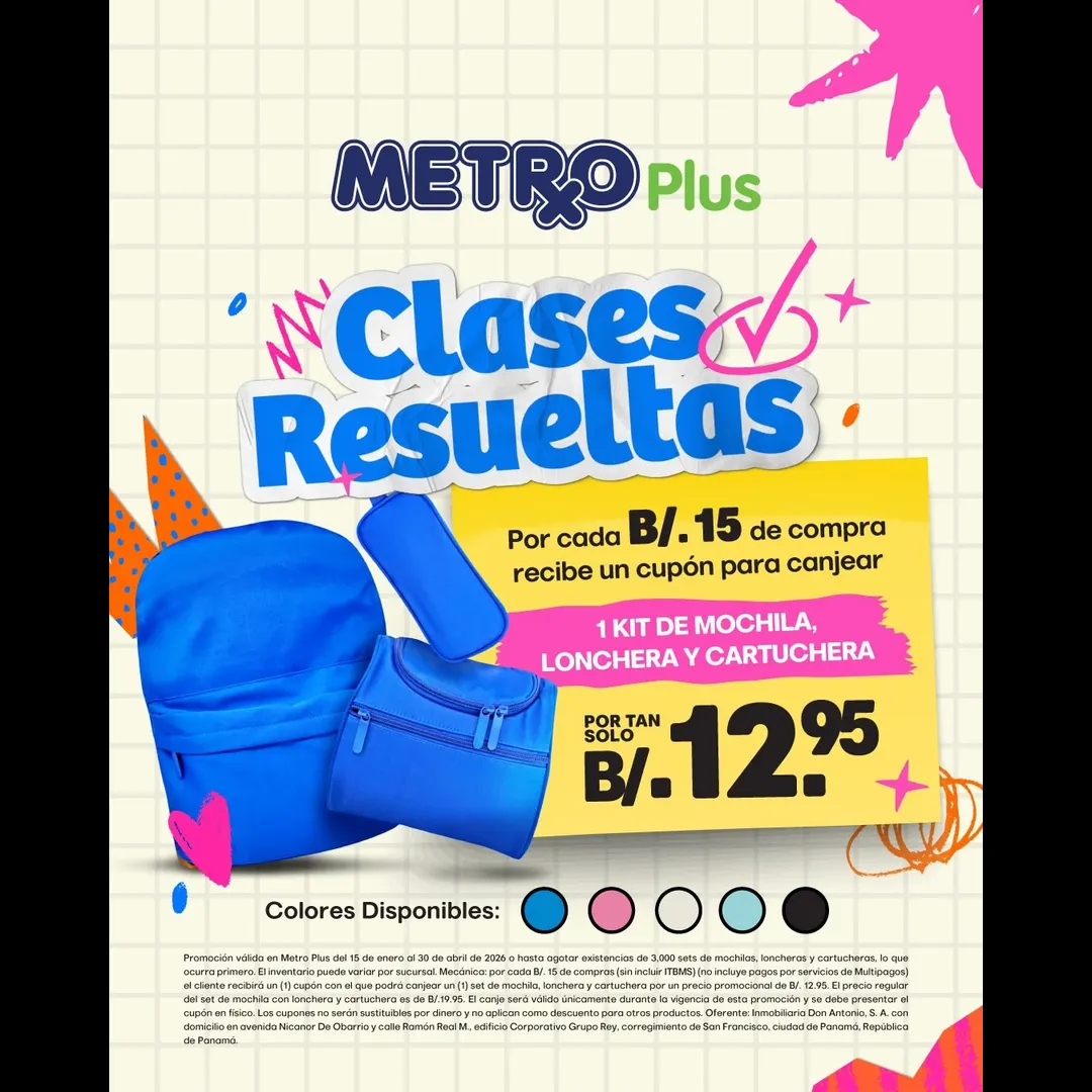 Por cada B/. 15 de compra, recibe un cupón y canjea un kit de mochila, lonchera y cartuchera por solo B/. 12.95 🎒✨