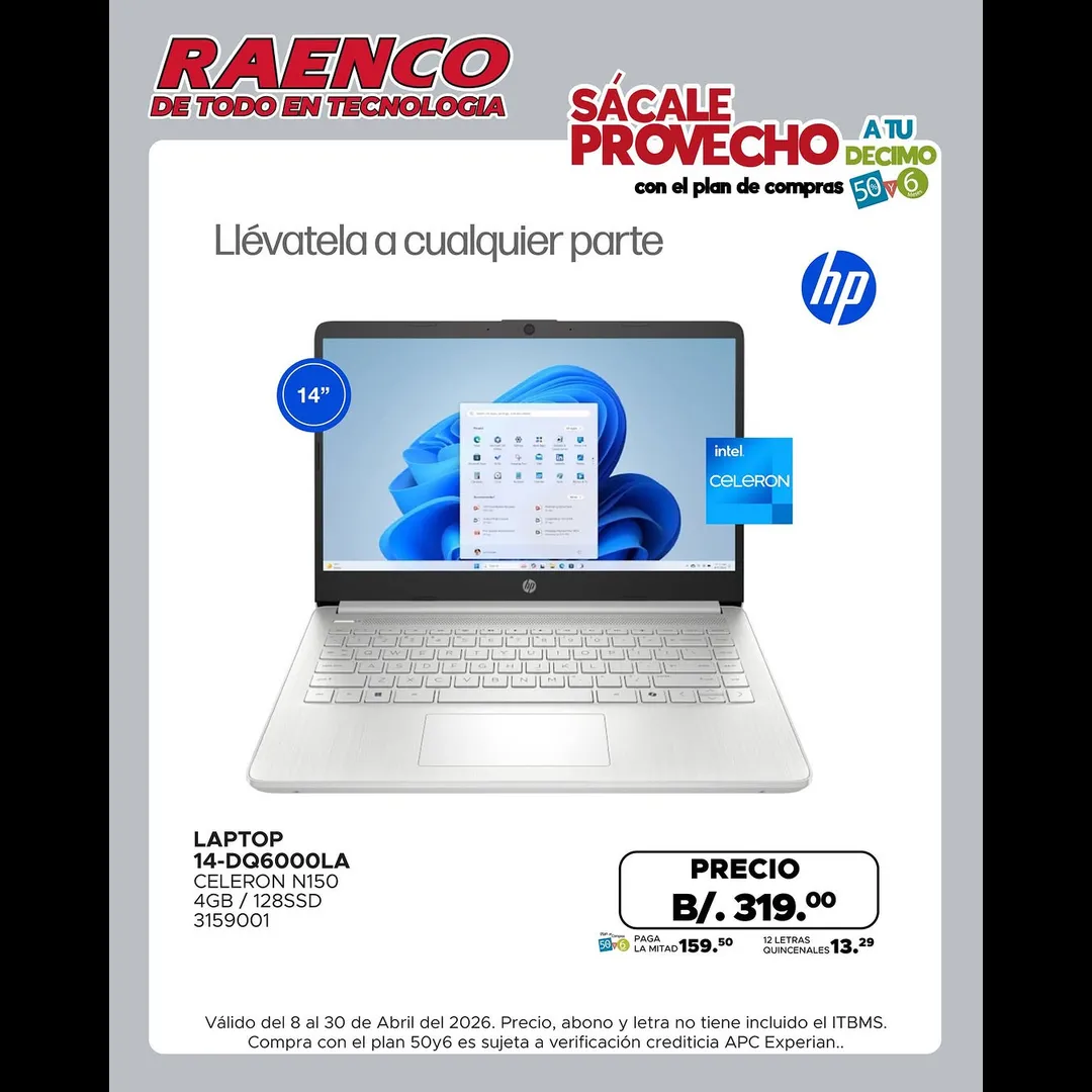 Aplica al Plan 50y6, desde Raenco.com o en una nuestras 6 sucursales