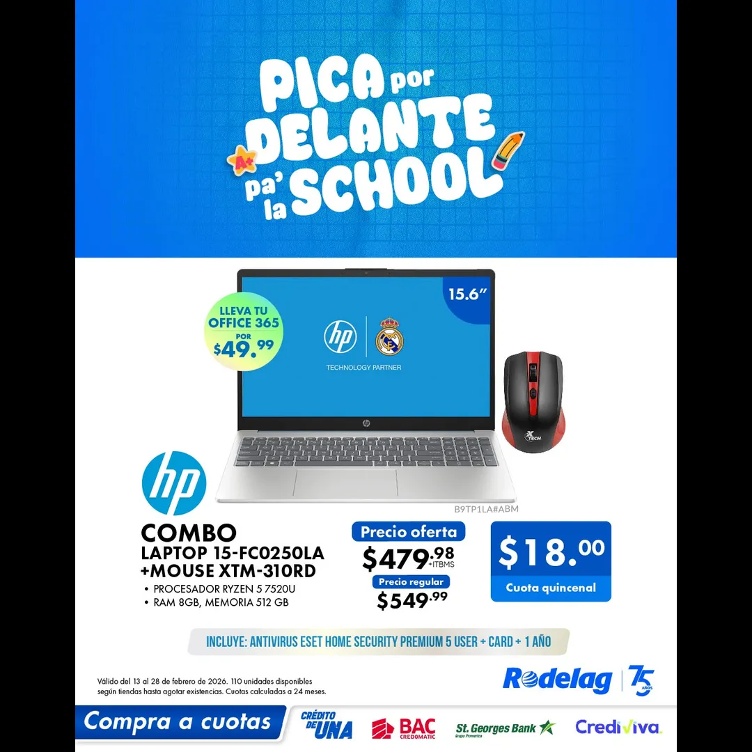 💻 Combo Laptop 15-FC02500LA + Mouse XTM-310R con todo lo necesario para tus clases virtuales y proyectos.