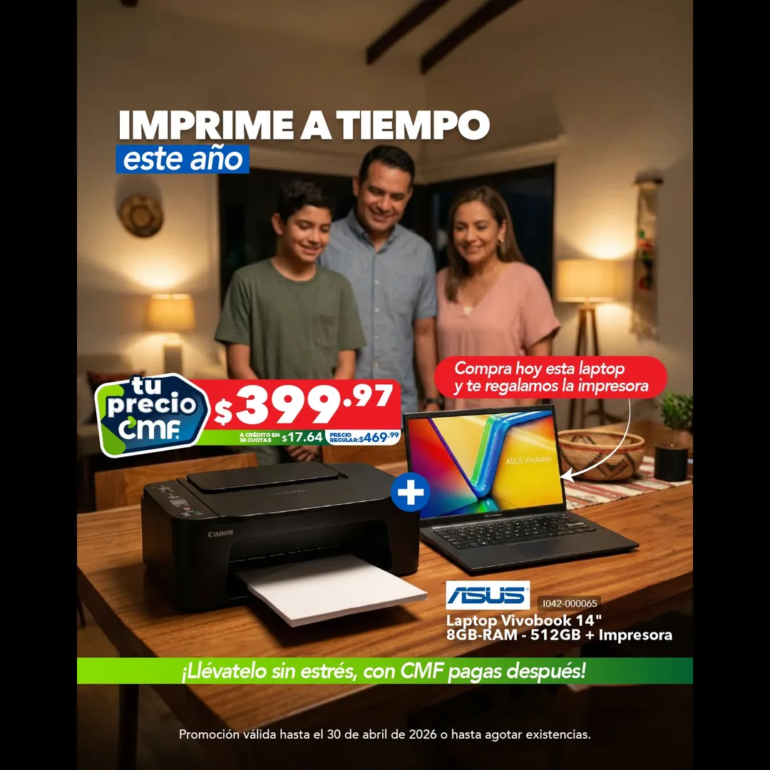 Prepárate desde ya. Aprovecha este combo de laptop + impresora y resuelve TODO desde casa, cuando lo necesites