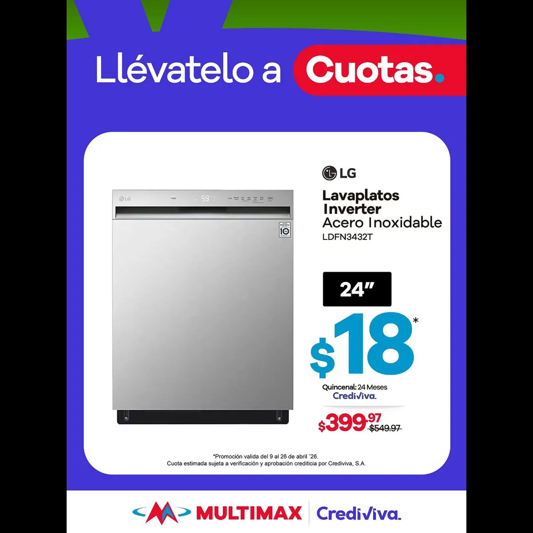 En Multimax, equipar tu casa es más fácil. Disfruta de un 10% de descuento exclusivo al realizar tu compra a cuotas con Crediviva. 🧺🥘