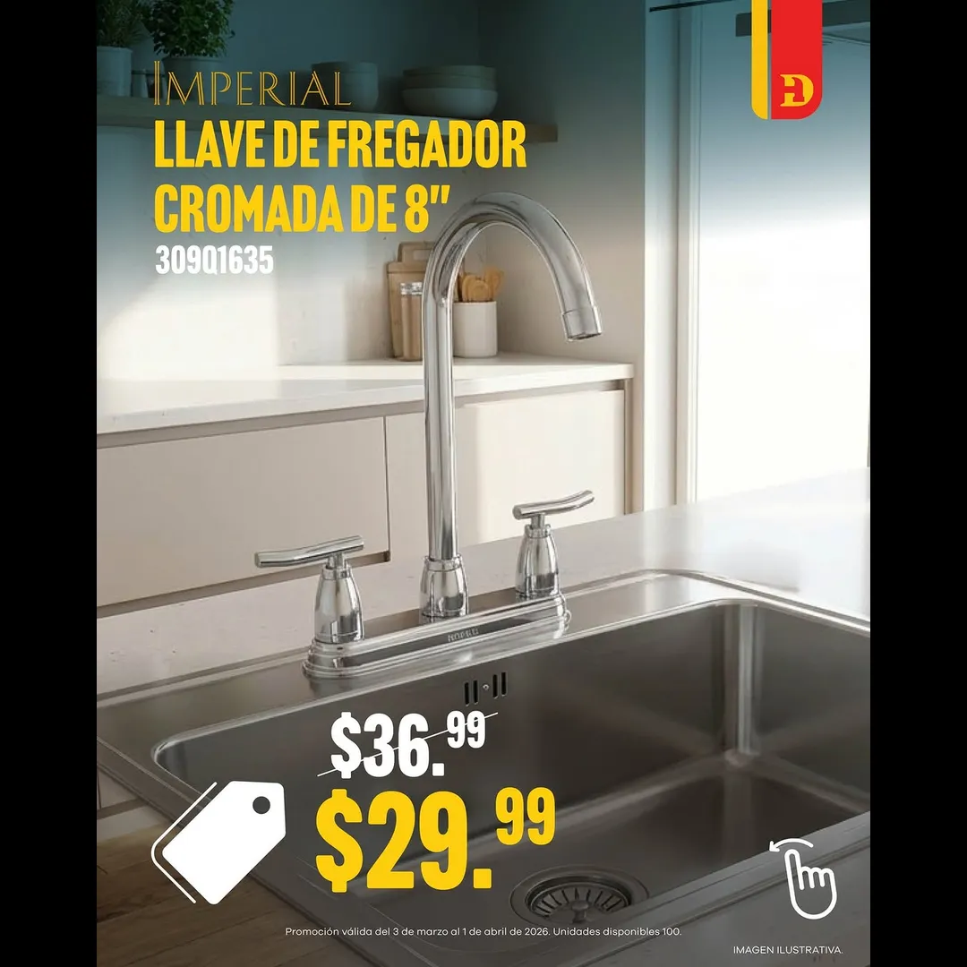 🚰✨ ¡Renueva tu fregador con estilo y funcionalidad! Las llaves de fregador Imperial combinan diseño moderno, durabilidad y practicidad para tu cocina. Ideales para facilitar tus tareas diarias mientras le das un toque elegante a tu espacio.