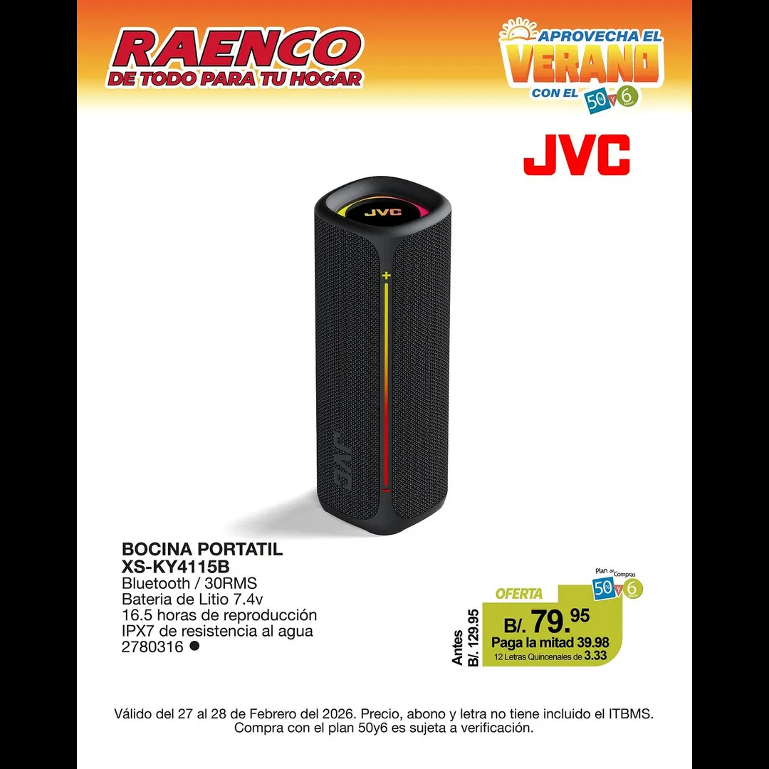 Lleva tu bocina JVC a mitad de precio: Plan 50y6