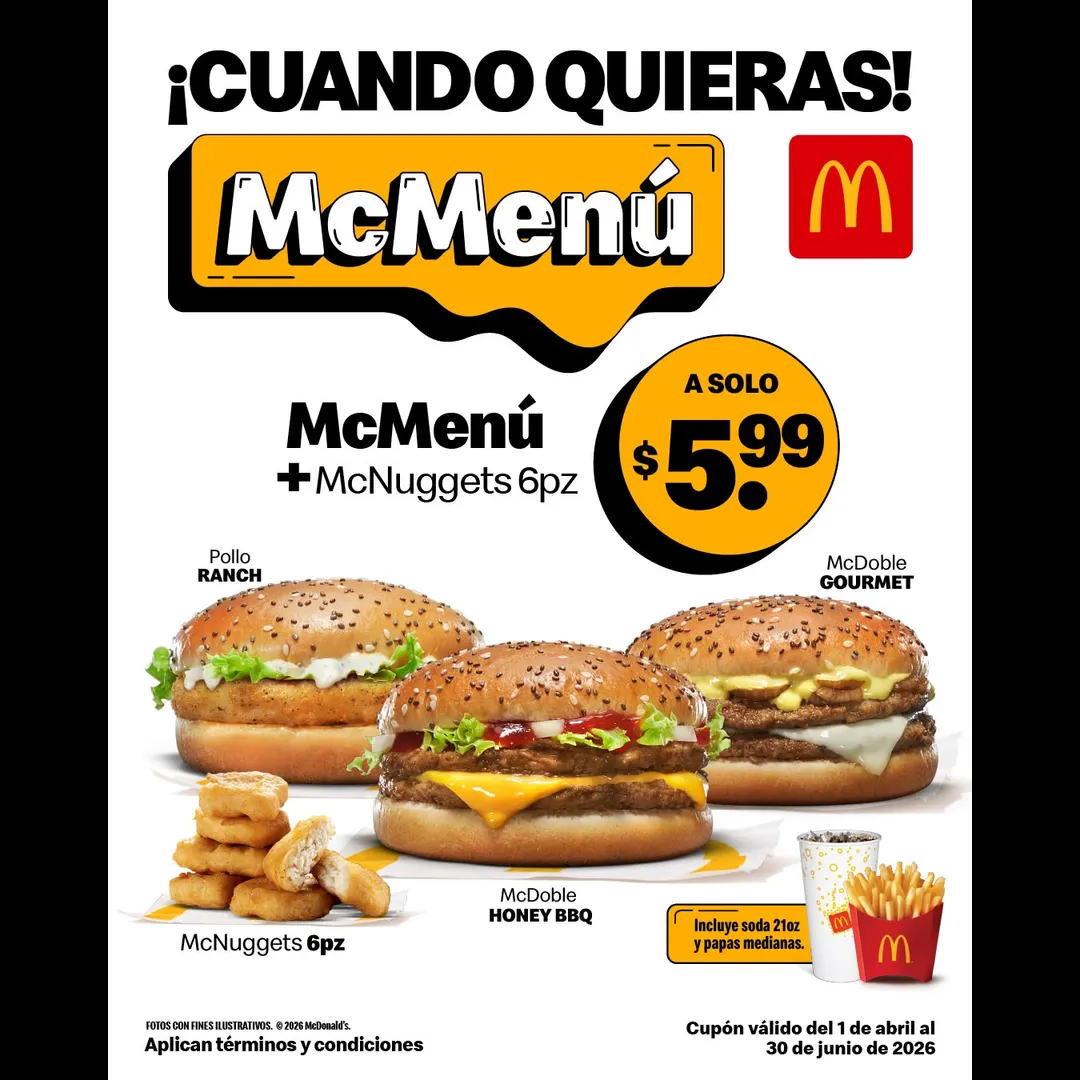 El anuncio publicado pertenece a @mcdonalds_pa, pueden hacer cambios sin previo aviso, consultar con la cuenta la validez de la misma.