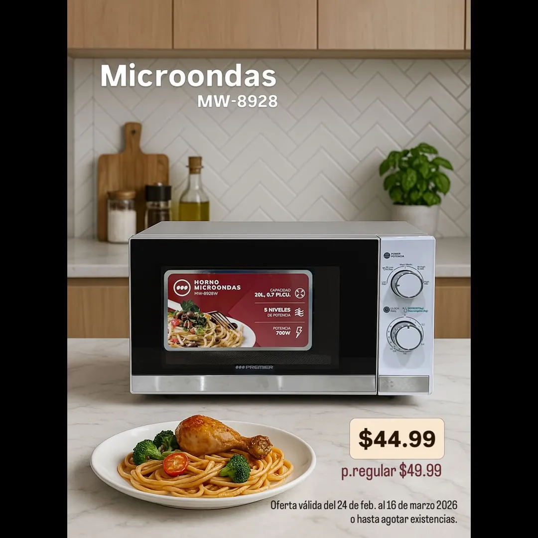 Calienta tus comidas en segundos con este Microondas Premier (MW-8928) de 20L 🔥🍲 práctico, compacto y perfecto para tu cocina.💲 $44.99 + ITBMS