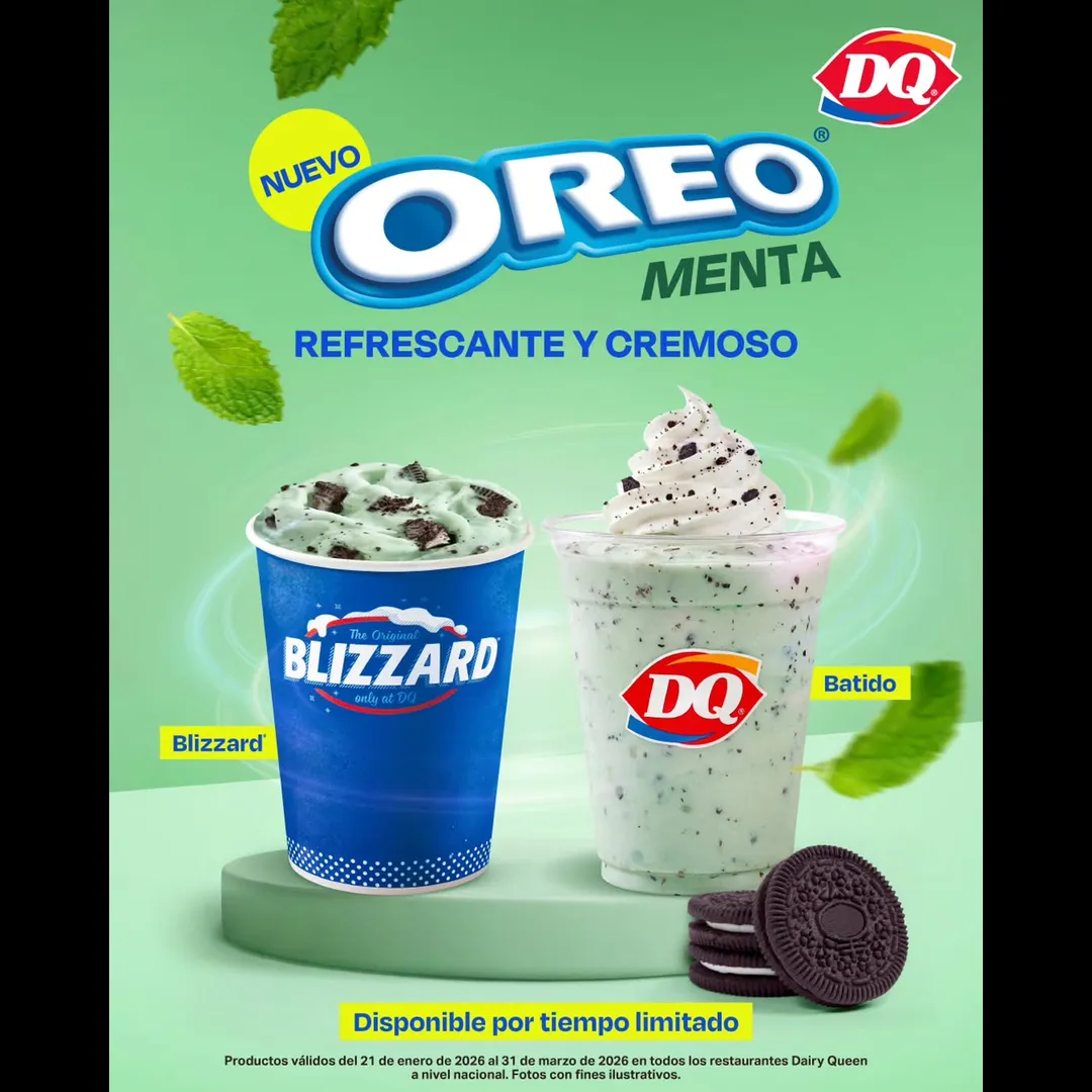 Llegó el sabor que se convertirá en tu obsesión. 🍦🍃 Refréscate con el nuevo y cremoso Oreo Menta, la combinación perfecta para darle un giro delicioso a tu día. Solo en Dairy Queen. 💚✨