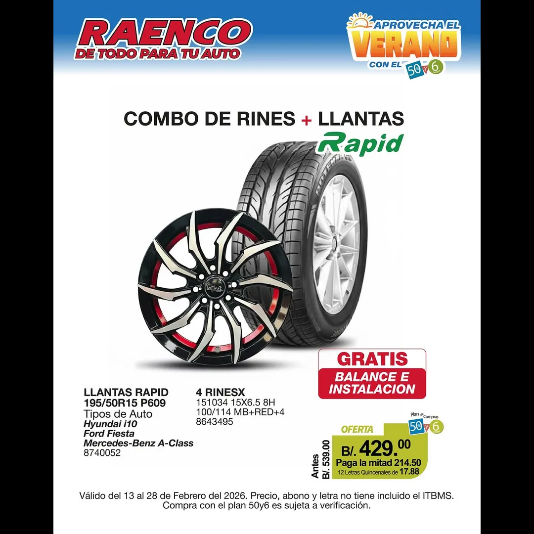 Oferta combo llantas y rines a B/. 429.00