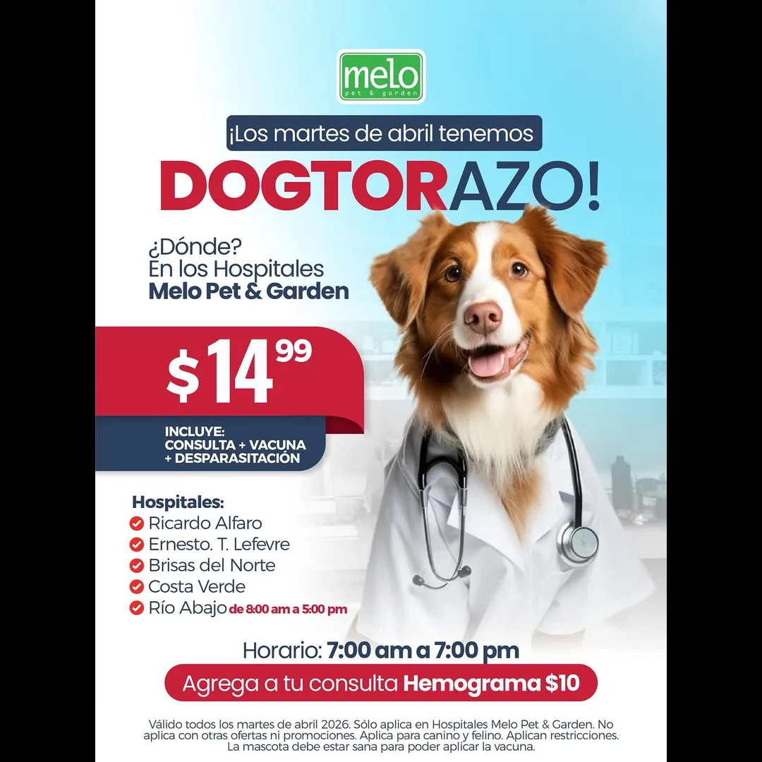 🔸Sólo aplica en Hospitales Melo Pet & Garden