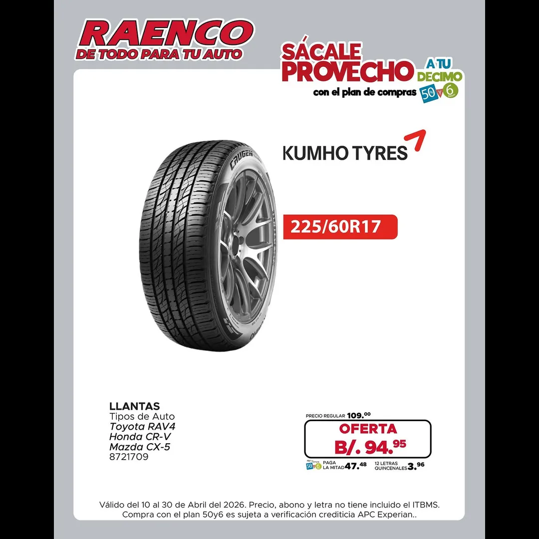 Oferta llantas Kumho a B/. 94.95