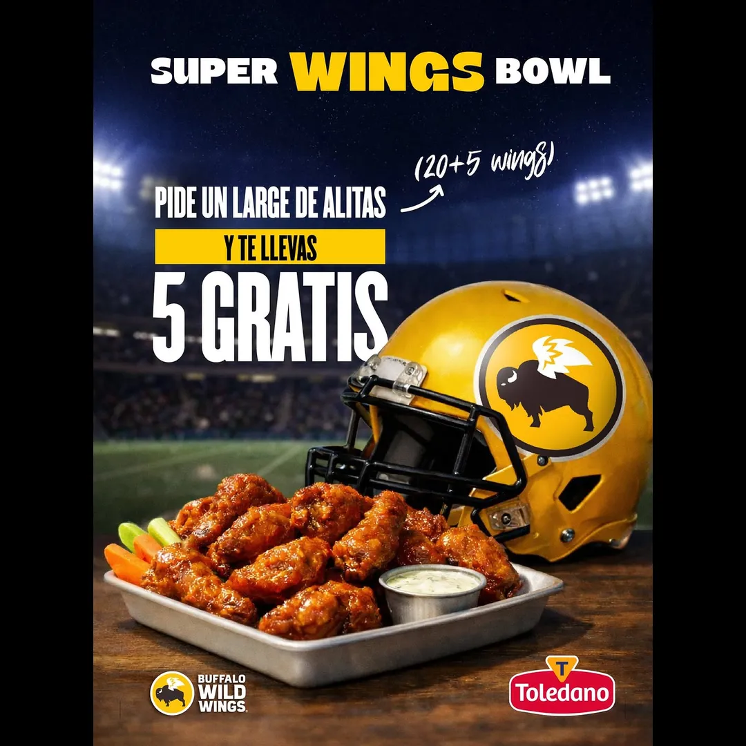 Pide un Large de wings y recibe 5 adicionales GRATIS.