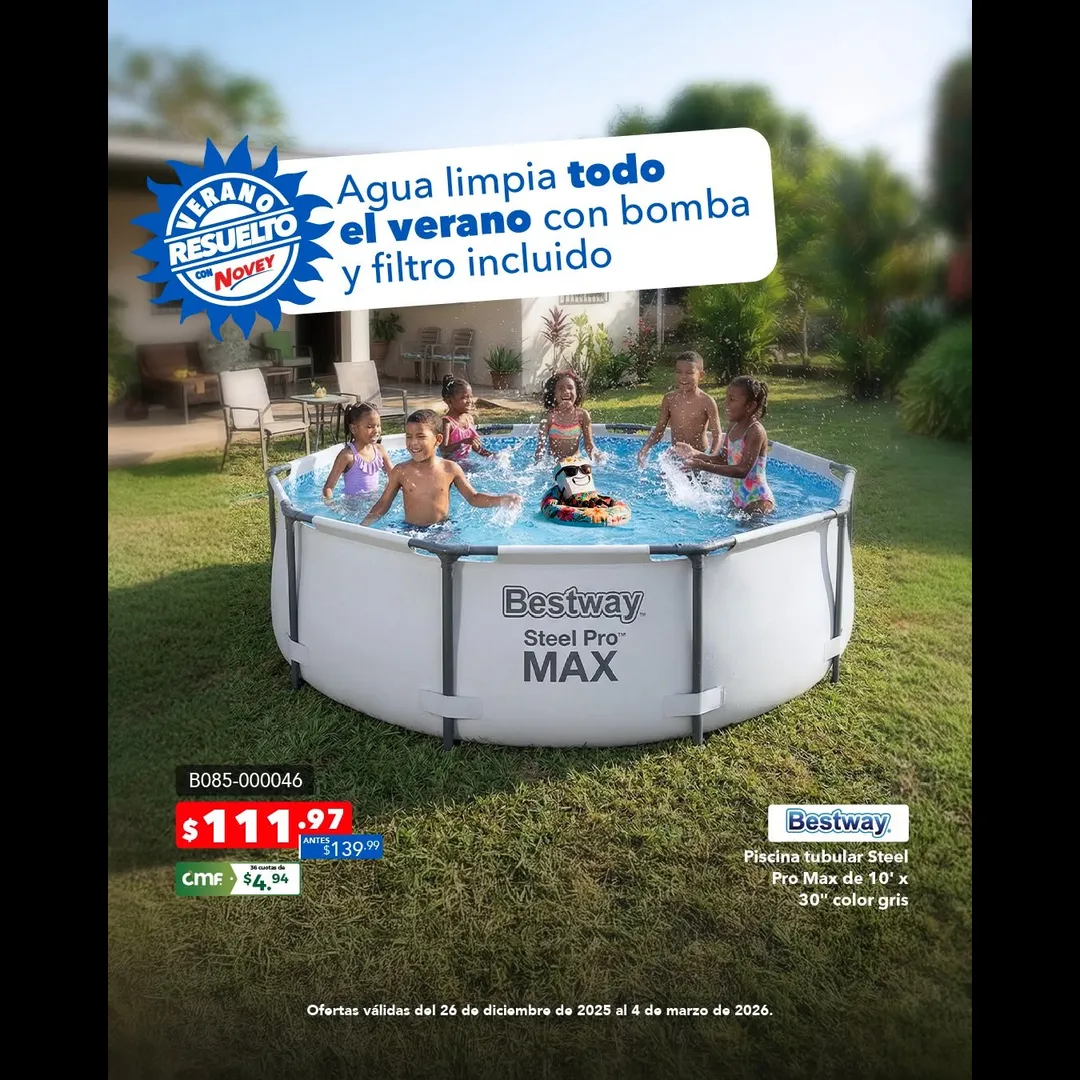Con Novey, tienes el VERANO RESUELTO 🛟✅: piscina lista para la diversión, agua más limpia por más tiempo y lo necesario para mantenerla clara sin complicarte.⁣
