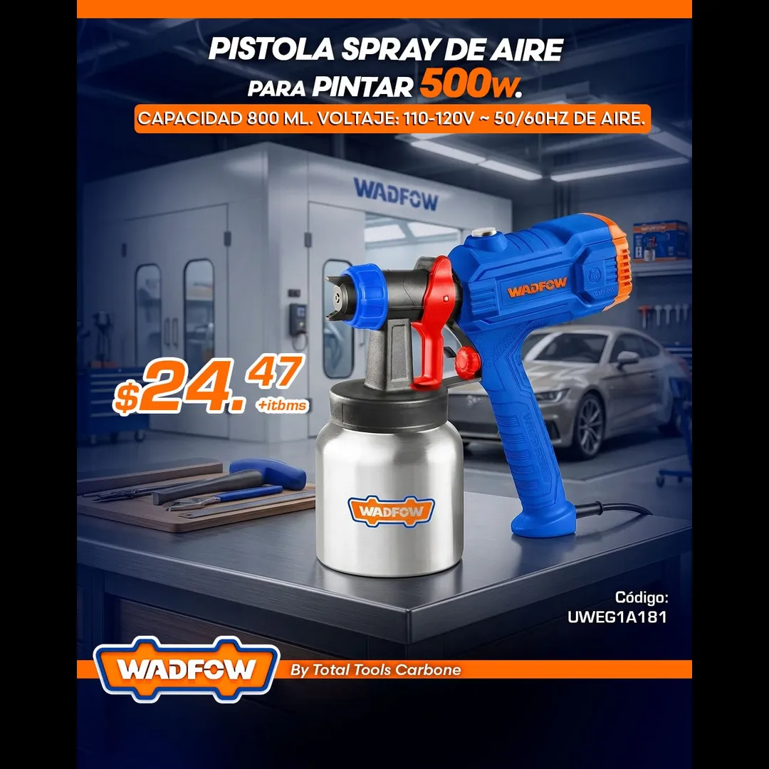 Potencia y precisión para un acabado profesional. 🔥 La Pistola de Pintar Eléctrica 500W es ideal para lograr resultados uniformes y de alta calidad en cualquier proyecto. Cuenta con tanque de acero inoxidable de 800 ml, boquilla de cobre puro para una mejor pulverización y flujo de pintura eficiente, perfecta para trabajos automotrices, muebles y más. Incluye taza medidora de viscosidad y aguja de limpieza para mayor comodidad. 💪🎨