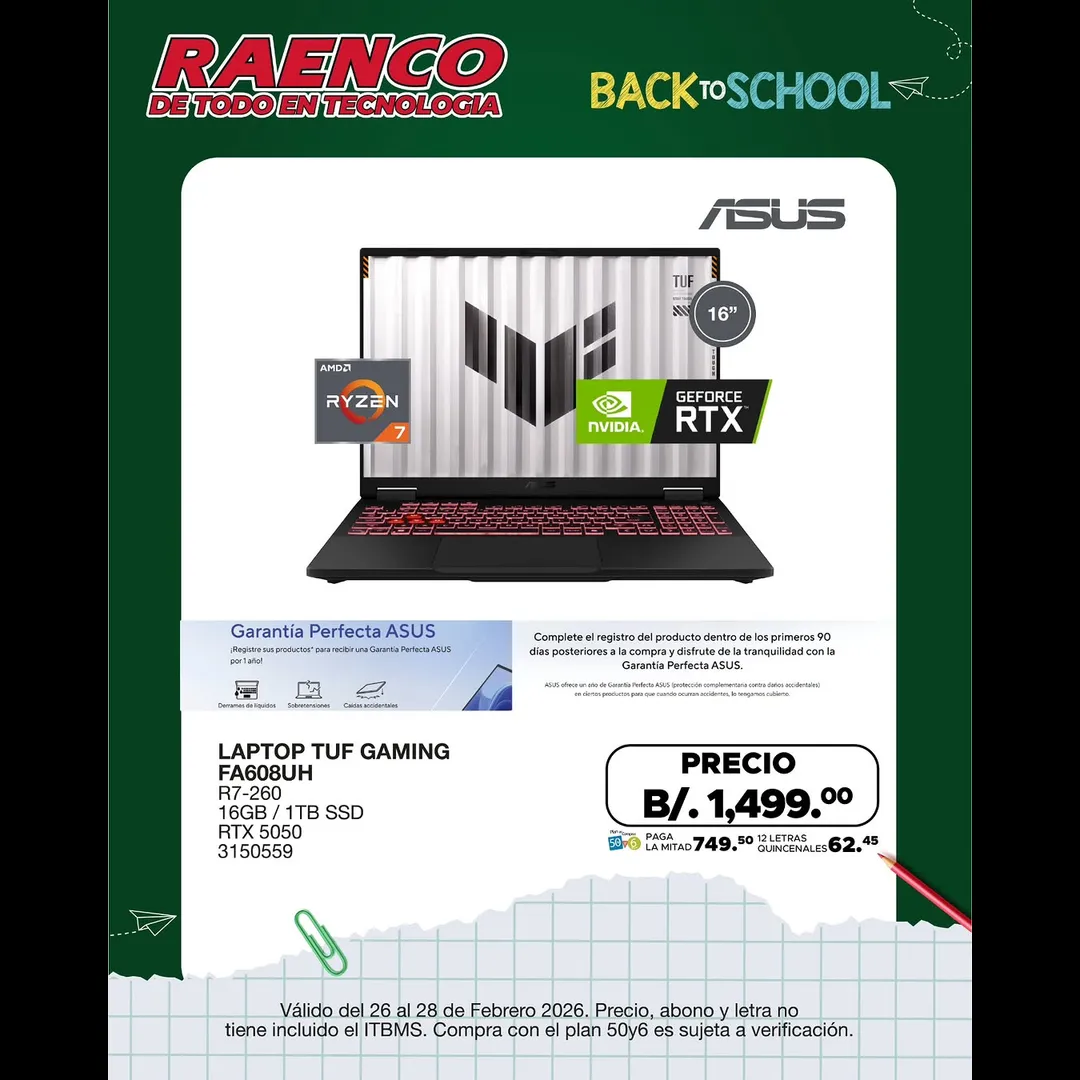 Plan 50y6 Raenco: Asus pagando mitad y 6 meses sin interés Precio: Según modelo elegido (consulta en Raenco)