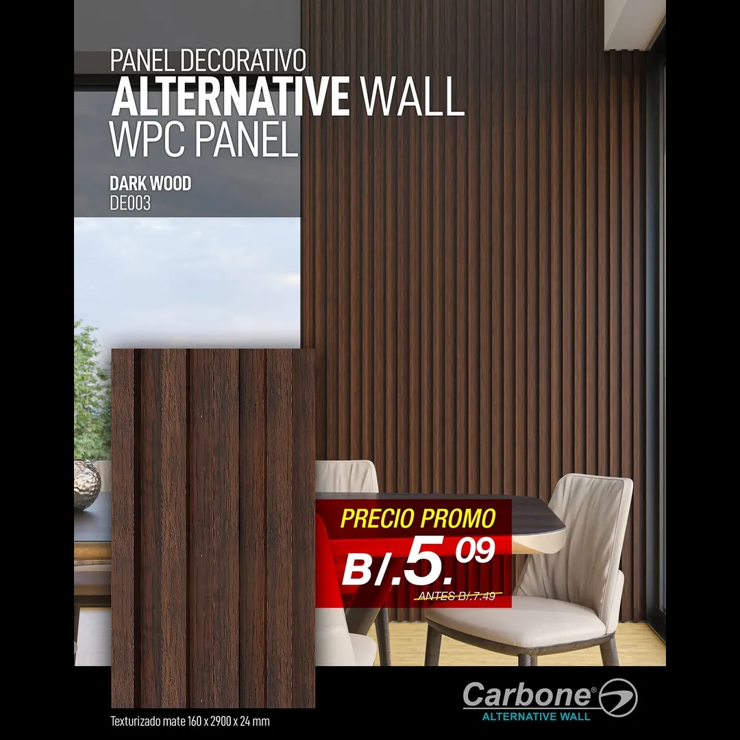 ¡La manera perfecta de añadir un toque de lujo y estilo a tu espacio! 🌟Paneles Decorativos Alternative Wall de WPC de Carbone 💰 Desde **$4.49 + ITBMS**