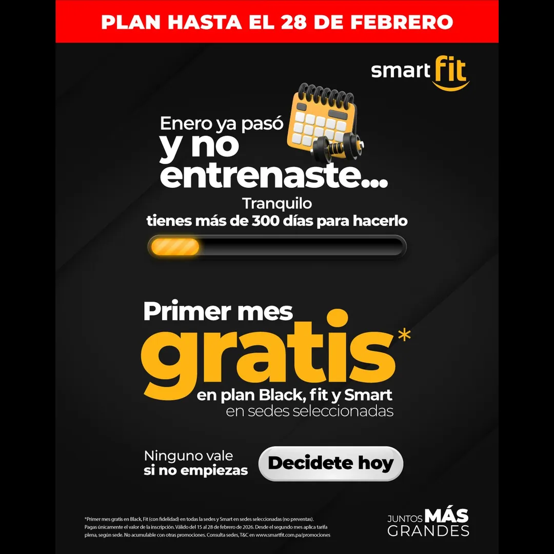 Aprovecha hasta el 28 de febrero y decídete hoy 👉 https://www.smartfit.com.pa/gimnasios