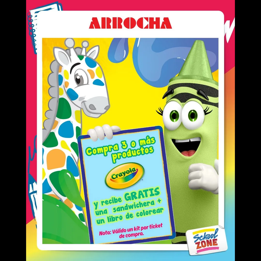🖍️Por la compra de 3 o más productos Crayola, llévate una sandwichera + un libro de colorear.📚(Válido un kit por ticket de compra).