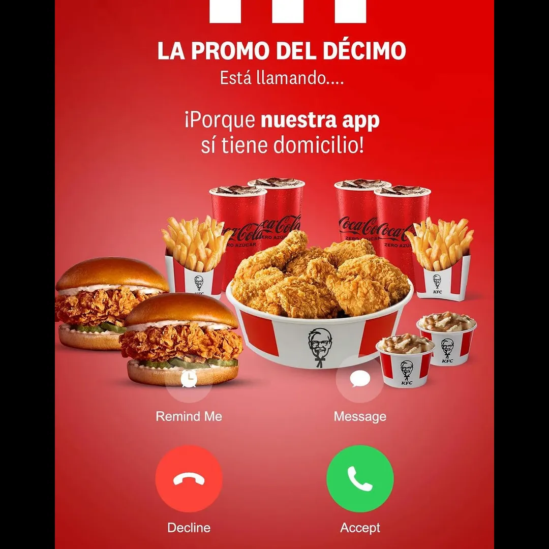 puedes rechazar la llamada… pero sabes que no lo harás 😈 aprovecha el último día de la promo de décimo y pide por la app KFC 📲🍗