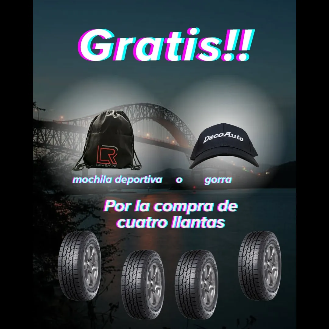 Aparte por la compra de 4 llantas te llevas una mochila deportiva o una gorra gratis!!