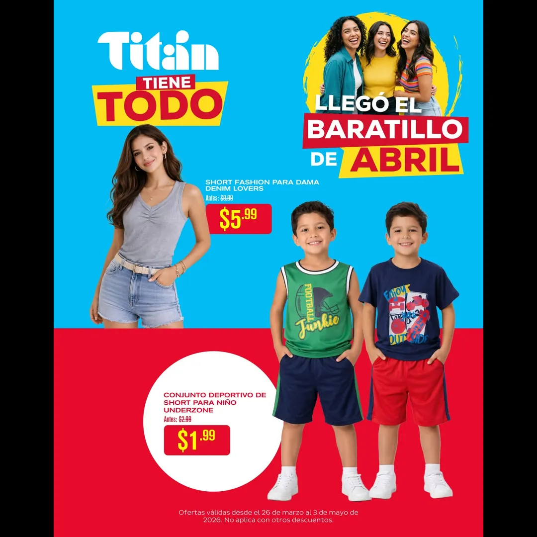 Ofertas válidas del 26 de marzo al 3 de mayo de 2026. No aplica con otros descuentos.