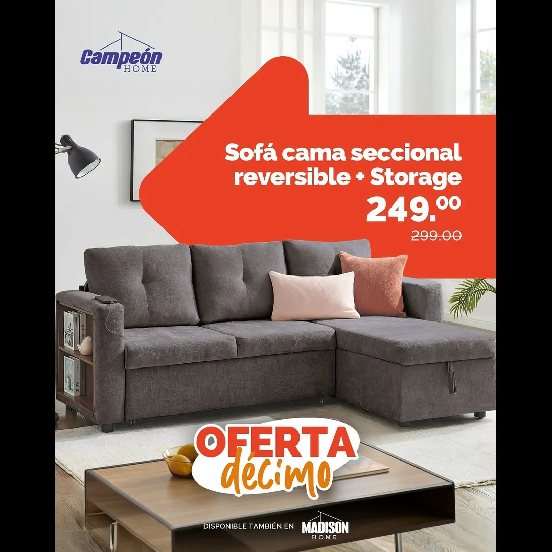 Con nuestra Oferta Décimo, te llevas este sofá cama seccional + storage por solo 249.00 .