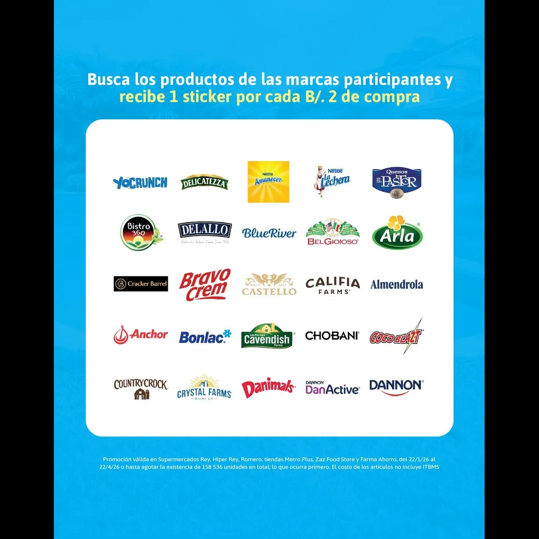 📝Recibe 1 sticker por cada B/.2.00 de compra en productos de las Marcas Participantes. ​