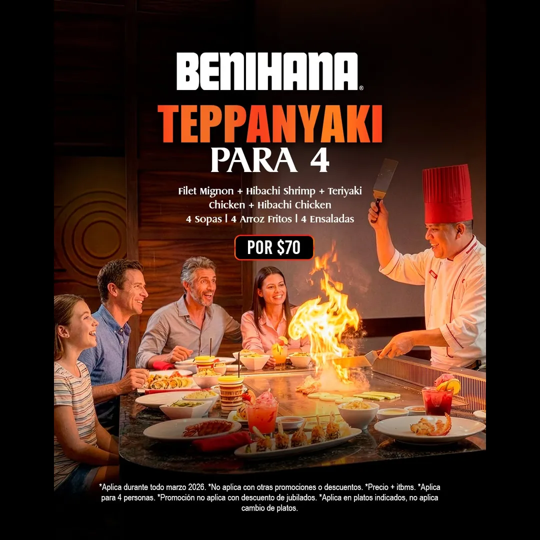 Marzo para celebrar con teppanyaki 🧑🍳🔥 Show en vivo, platos irresistibles y una experiencia única en cada mesa, celebra con nuestros paquetes teppanyaki para 4 y 6 personas disponibles durante todo el mes de marzo 2026.