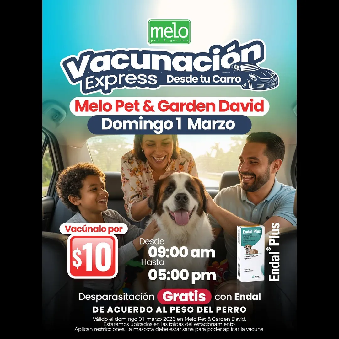 ¡El domingo 1 de marzo tenemos Vacunación Express desde tu carro en Melo Pet & Garden David!🐾♥️🐱🐶🫶🏻🚙