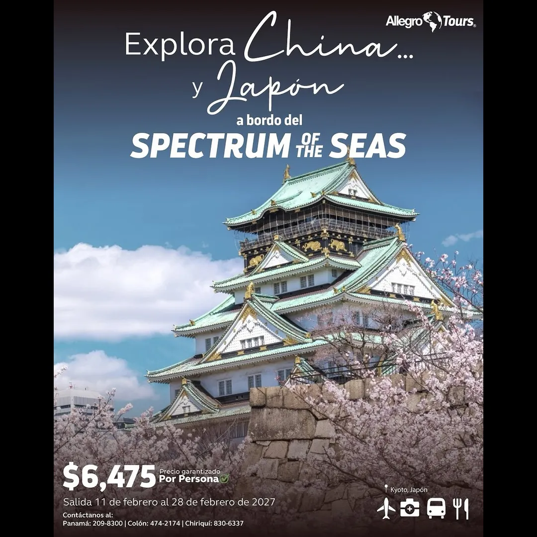 🎉🌏 ¡Nos vamos a Asia en 2027! 🇨🇳➡️🇯🇵Del 11 al 28 de febrero, prepárate para una aventura inolvidable:🚆 Recorre China por tierra 🛳️ Y luego cruza a Japón en crucero a bordo del Explorer of the Seas📍 Tokio y Kyoto te esperan con templos, luces, cultura ¡y mucha emoción! ✨ Historia, paisajes, modernidad y diversión en un solo viaje.